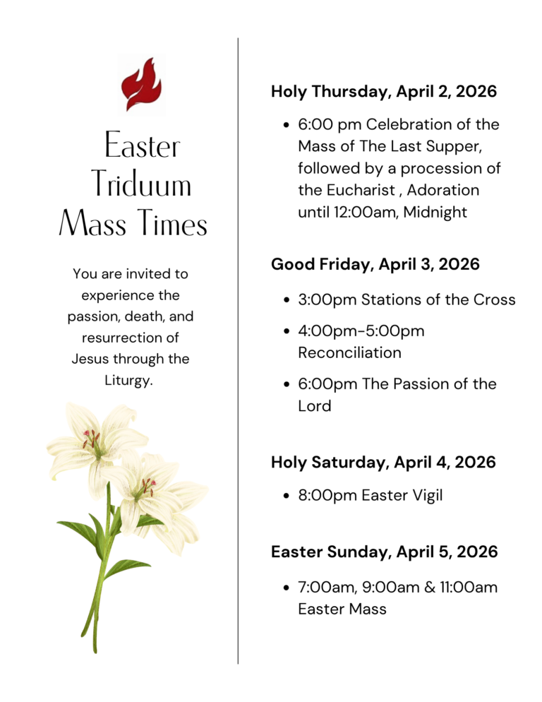 Holy Spirit Parish is a Catholic community of faith, rooted in tradition and the sacraments, that exists to proclaim the gospel, form disciples of Christ, and sanctify the world.